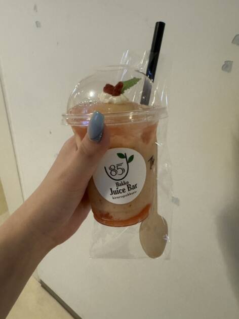お味は少し酸っぱい?感じで桃のつぶつぶが沢山入っていて美味しかったです!