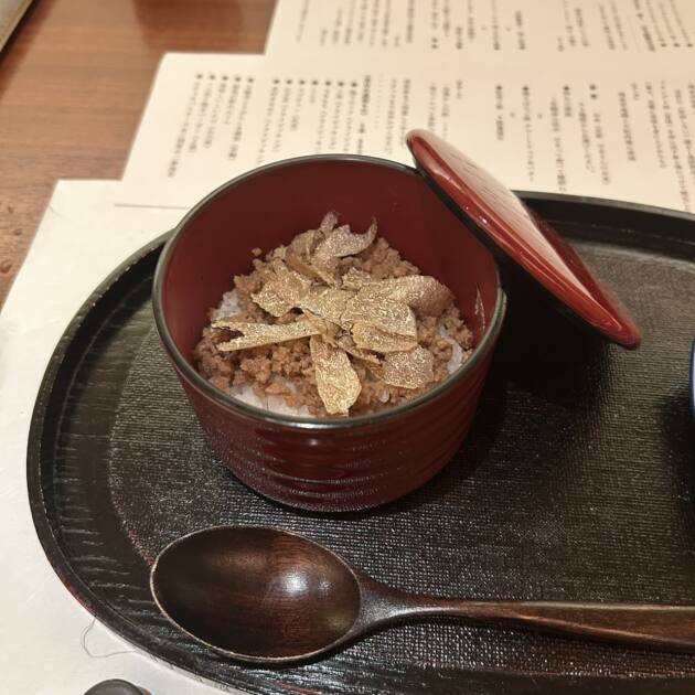 鶏そぼろ飯は、蓋を開けるとたくさん乗ってあるトリュフの香りがしっかりとしてお米はバター風味がしてホクホクでそぼろの味付けもとてもよくておいしかったです!