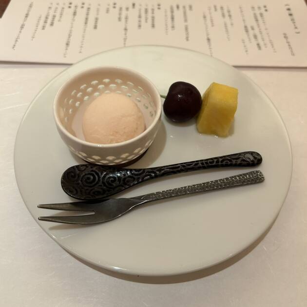 ジェラートは、前回はバニラアイスにフルーツでしたが今回は桃のジェラートにパイナップルとブラックチェリーでした!!