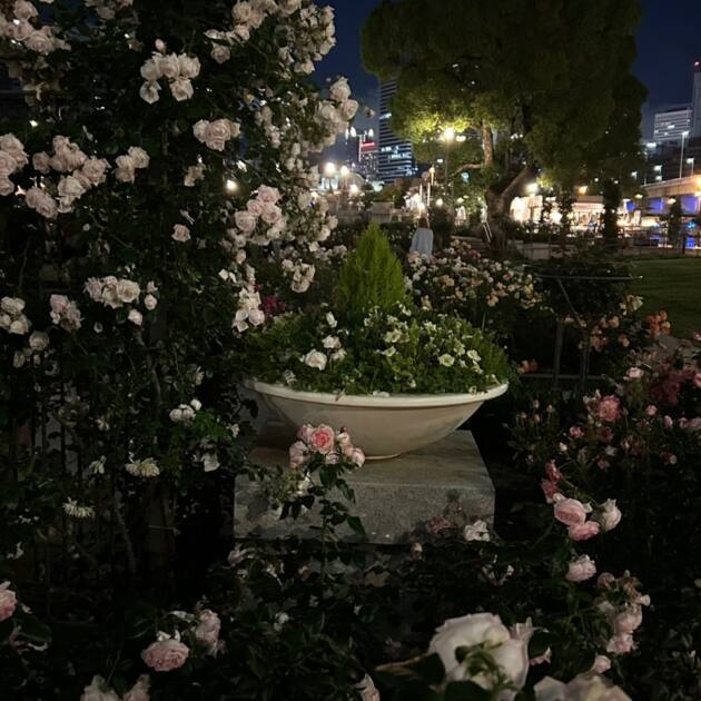 赤の薔薇は暗い空ととても相性が良く一番綺麗だなと思いました!!