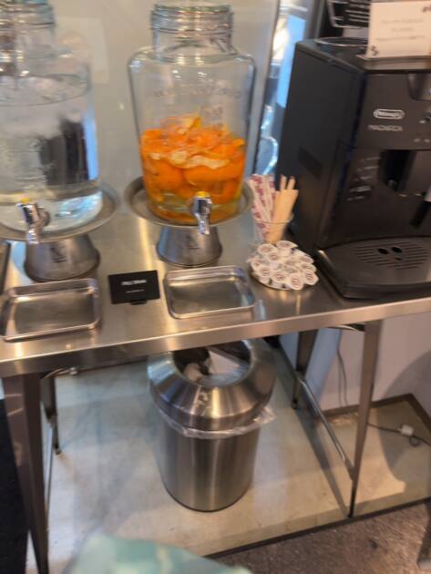 店内にはデトックスウォーターとコーヒーのサービスがありました!