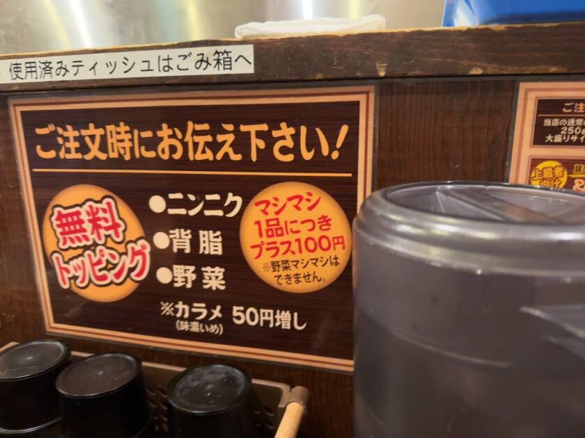 ニンニク、背脂、野菜のコールもありますが、店員さんが優しく聞いてくれるので二郎系初心者にもおすすめのお店です!!