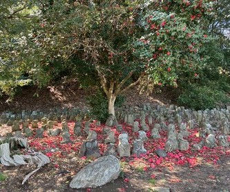 そして、古墳の上には、このようにお地蔵さんがひたすら並んでいるのですが、どれもなぜか、お顔が・・・ないのです・・・。