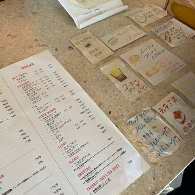 レジの場所にもおしゃれな絵のメニューが描かれていていました!!