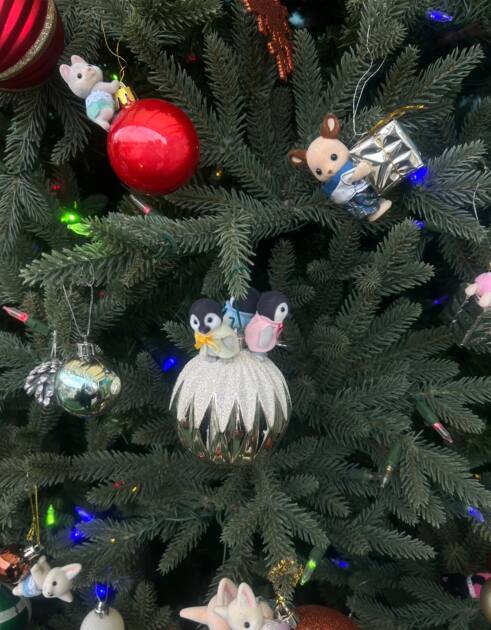 クリスマスが近かったのでパーク内には大きなツリーがあり、飾りにはたくさんの動物のお人形が吊るされていました笑