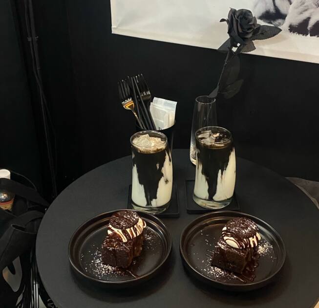 お皿が黒でブラウニーが茶色で可愛いすぎました🤎