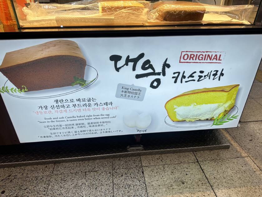 明洞駅の地下におばちゃんが焼いてくれてるカステラ屋さんがあります!