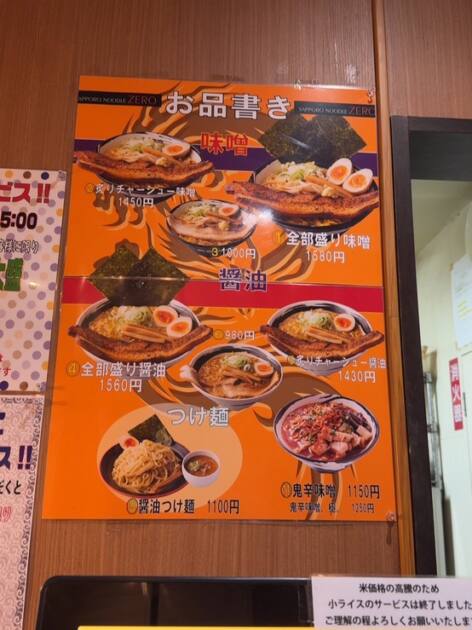 SAPPORO NOODLE 零:北海道札幌市中央区南2条西1丁目 狸小路1丁目(市営地下鉄南北線・東西線大通り駅より徒歩約5分)