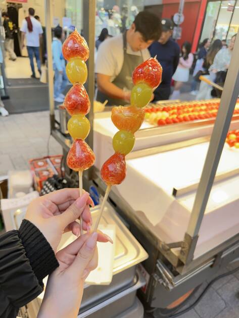 日曜日の明洞は昼間から屋台がたくさん出ていてとても賑わっている様子でした。