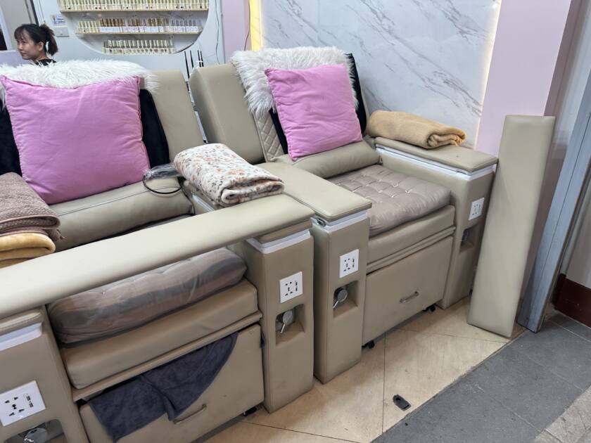 マッサージ機付きの椅子に座ります。同じところばかりゴリゴリ動くので痛くて痛くて止めました。