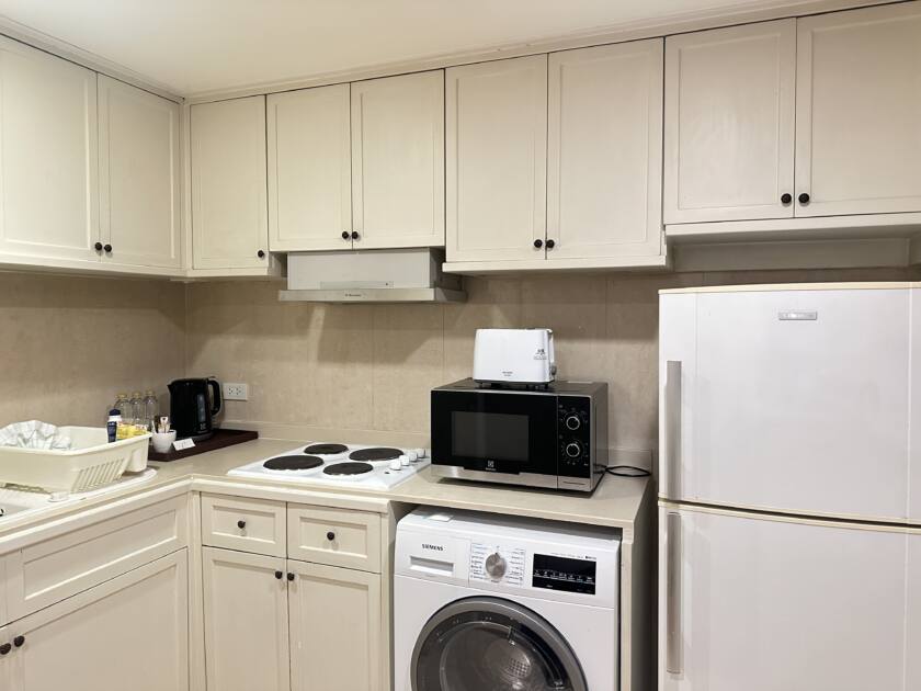 洗濯機、トースター、電子レンジ全てが揃っているのでとても便利です!冷蔵庫も大きくてたくさん入りますよ!