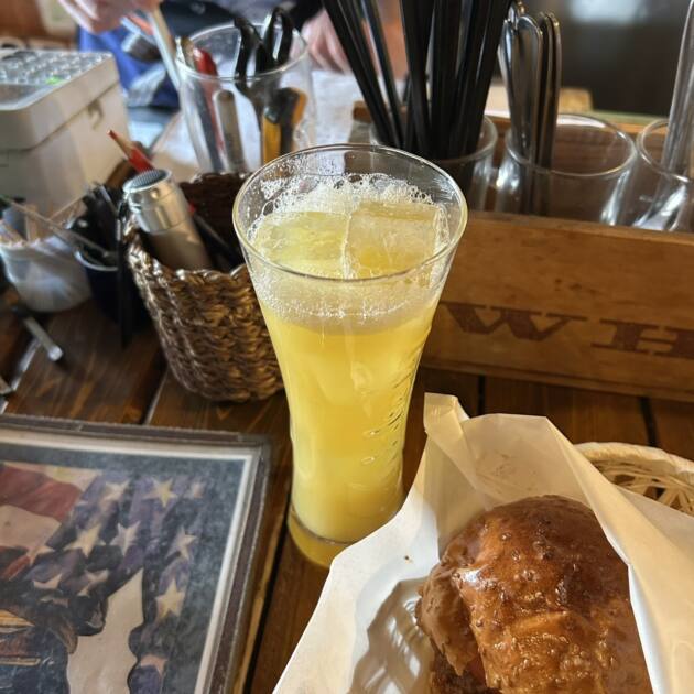 ハンバーガーに1つドリンクを頼むようになっていて、パインジュースを頼みました!!