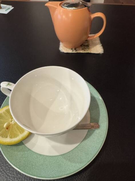 ポットとカップが届き、自分で注ぐようです。