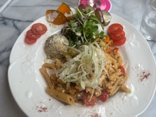 季節の野菜とひき肉のアラビアータ・ショートパスタです!