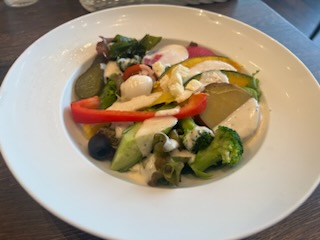 ドレッシングが、チョレギしょうゆ・シーザー・サウザンの中から選ぶことができたので、シーザーを選びました。蒸したさつまいもや、ピクルスなどさまざまな野菜が入っていてとてもボリュームがありました。