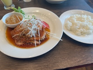 私は、若鶏のネギソースを注文しました。ネギソースがゴマの香りがして、とても美味しかったです。また、香味野菜がいい箸休みめになっていてよかったです。