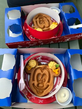 ミッキーワッフル(マンゴーホイップ&メイプルソース、バニラアイス付き)を注文したら、