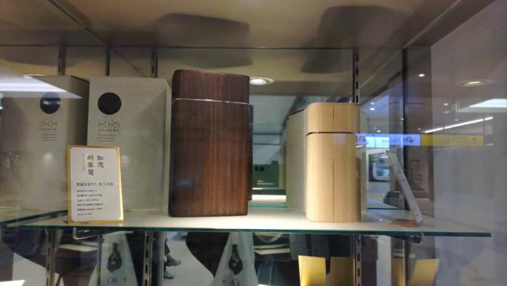 こちらは「加茂桐箪笥」というもので、引き出しや扉がなく、開け閉めが軽く、気密性の高い工作品だそうです。また、加茂桐箪笥は200年以上にわたってつくられていた伝統工芸品だそうです。
