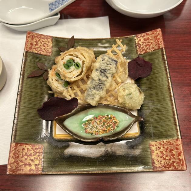 5品目は「揚物(かにの東寺揚げ彩膳胡麻塩)」です!