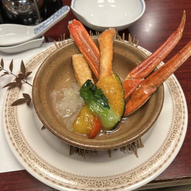 6品目は「小鍋(かにしゃぶみぞれ鍋塩柑橘酢 譲胡麻)」です!