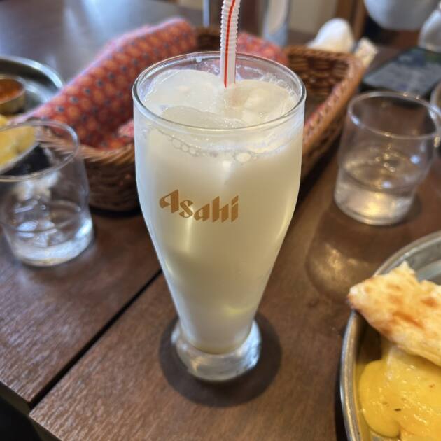 ドリンクはラッシーでとても飲みやすく日本の飲み物で例えると飲むヨーグルトに似ていて