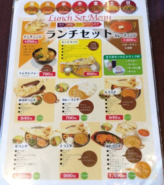 ランチセットの種類がたくさんあってナンはプラス料金になりますがガーリックナン・チーズナン・