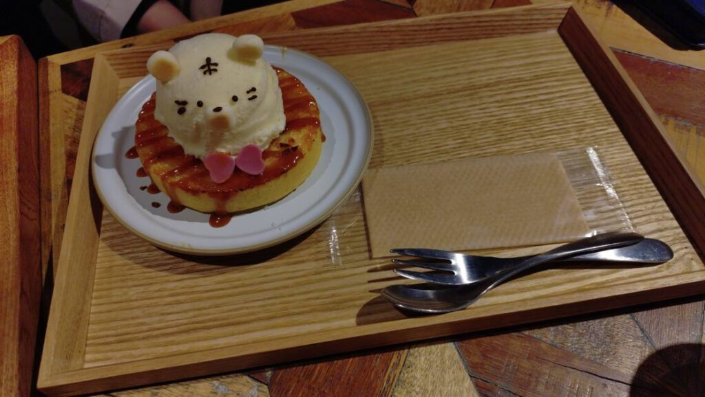 今回の写真は、アニマルバームで、アイスはバニラアイスと季節限定と選べバニラに、またアイスの柄(アニマル)をトラに、そしてバーム部分はぶりゅれバームクーヘンとワッフルを選べぶりゅれバームクーヘンを選択しました(*˘︶˘*).。.:*♡ぶりゅれになっているだけあって、表面はすごくカリカリで、バームクーヘン自体はもそもそ感がありました。
