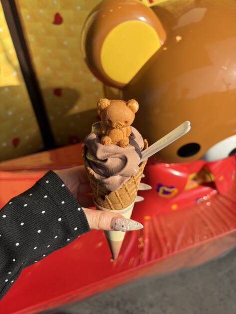 ご飯屋さんの隣には、りらっくまカフェがあったのでそちらでりらっくま型のベビーカステラと
