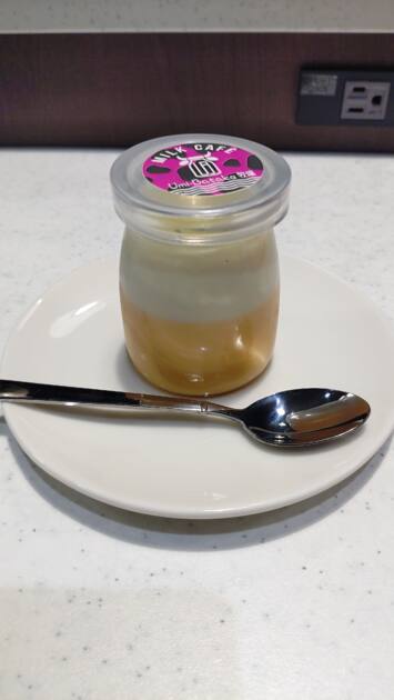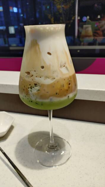 今回私が頼んだものは、フロマージュ(左)と抹茶カフェラテ(中央と右)を頼みました!フロマージュに関しては、上に乗っている液体が結構塩味があり始めは驚きましたが、下の牛乳プリンを食べたのち、少し混ぜながら食べると味変で楽しめる感じなのかなと思いました😋ただ個人的には下のプリンだけ食べるほうが好みではありましたb