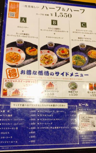 メニューはこのようなハーフ&ハーフのものがあったり、