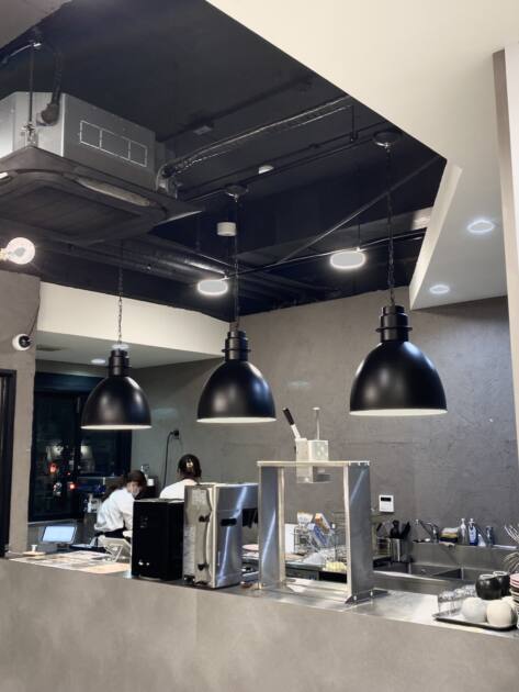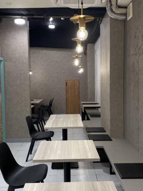 お店の雰囲気はモノトーンでお部屋も広く席ごとに感覚が広めに空いてあります!!