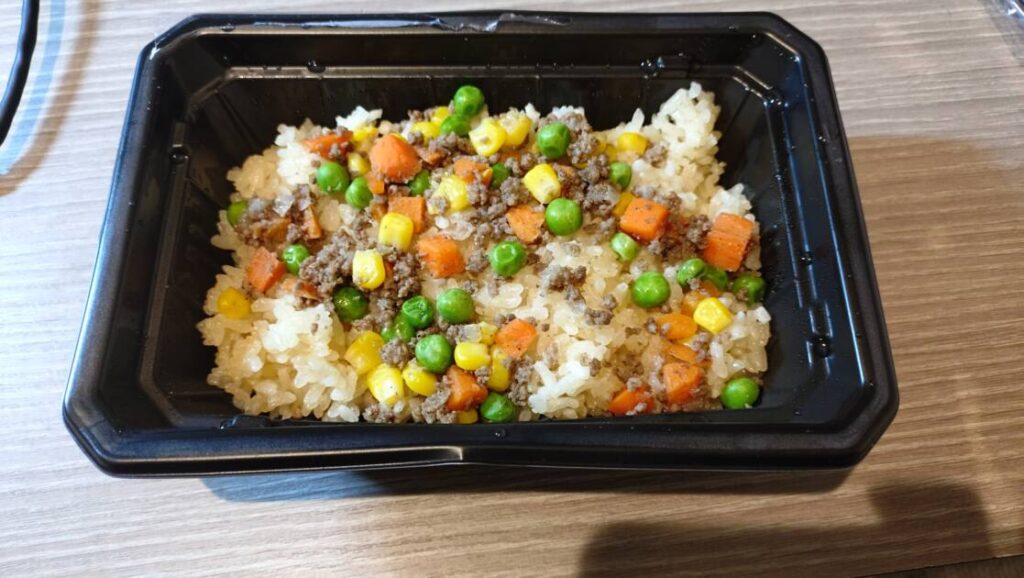 朝食(軽食)は事務所に置かれている複数の冷凍食品からどれか選ぶ形式でして、わたしはビーフピラフを選びました!冷凍食品ではありましたが、意外とお米がパラパラしていて、かつ具もたくさんで食べ応えがありました(*´ч`*)