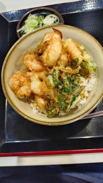 またかきあげ丼のほうは、海老が思っている以上にぷりぷりかつ肉厚で、一緒に揚げられていた春菊のようなものもいい味をだしておりおいしかったです(*’༥’ *)