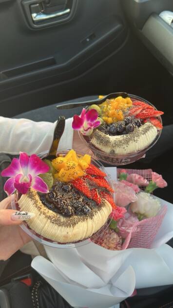 以前紹介したUZUのお店の新店舗でサイズはミニサイズがあって下にはグリークヨーグルトがたっぷり入っていて、アサイーは甘すぎずなのでとてもバランスが良くフルーツもたくさん載っていて満足できるアサイーボウルです(^_^)v