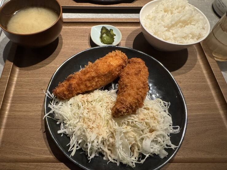このチキンカツ定食は、チキンがとにかく柔らかく、家ではこんなに柔らかくできないな~と思いました。一味とソースを混ぜてディップして食べると美味しかったです!