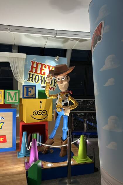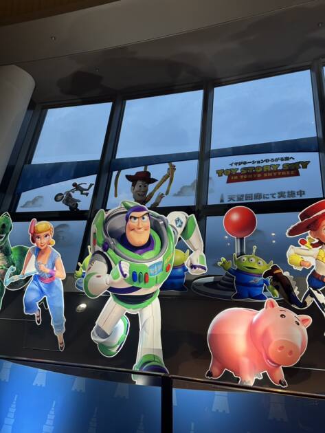 頂上に上がった時には外は真っ暗になっていて東京タワーが見つけられませんでしたが、トイストーリーとコラボをしていて頂上についてエレベーターが開いた時にはバズとウッディーがお迎えをしてくれていました⭐︎