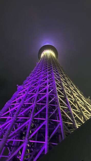 スカイツリーを降りて少し離れて下から見るととても大きくて夜になるとライトアップされて紫やピンクなどとても綺麗でした!!