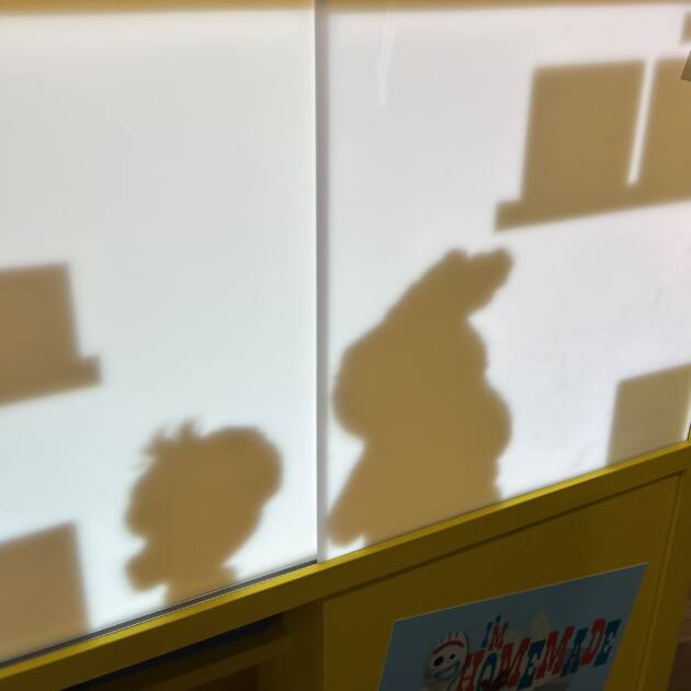 実際は扉を開ける前に一枚目の画像で影が踊っていて扉を開けたら2枚目の画像のようにおもちゃが止まっていて不思議な現象でとても面白かったです!!