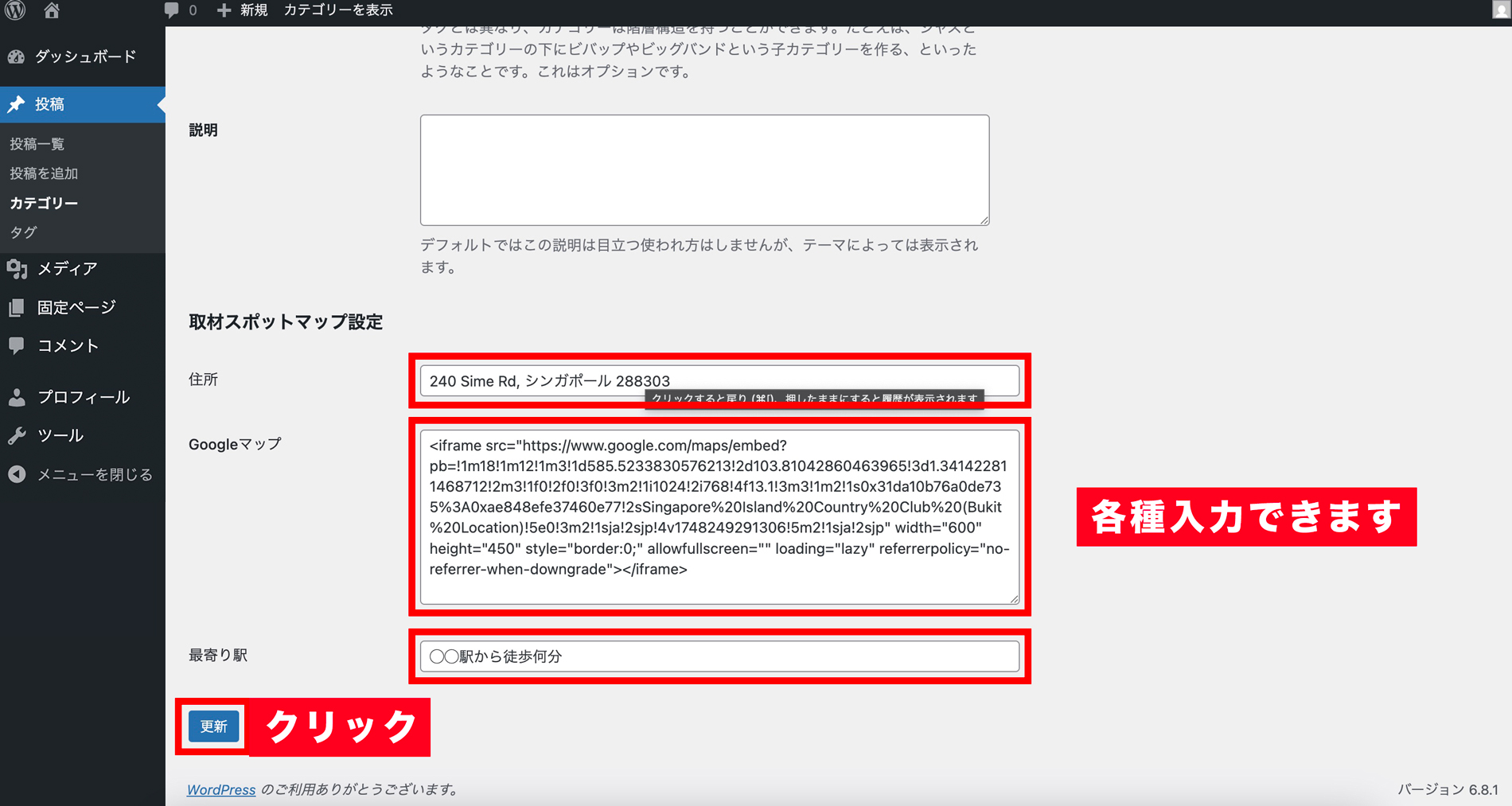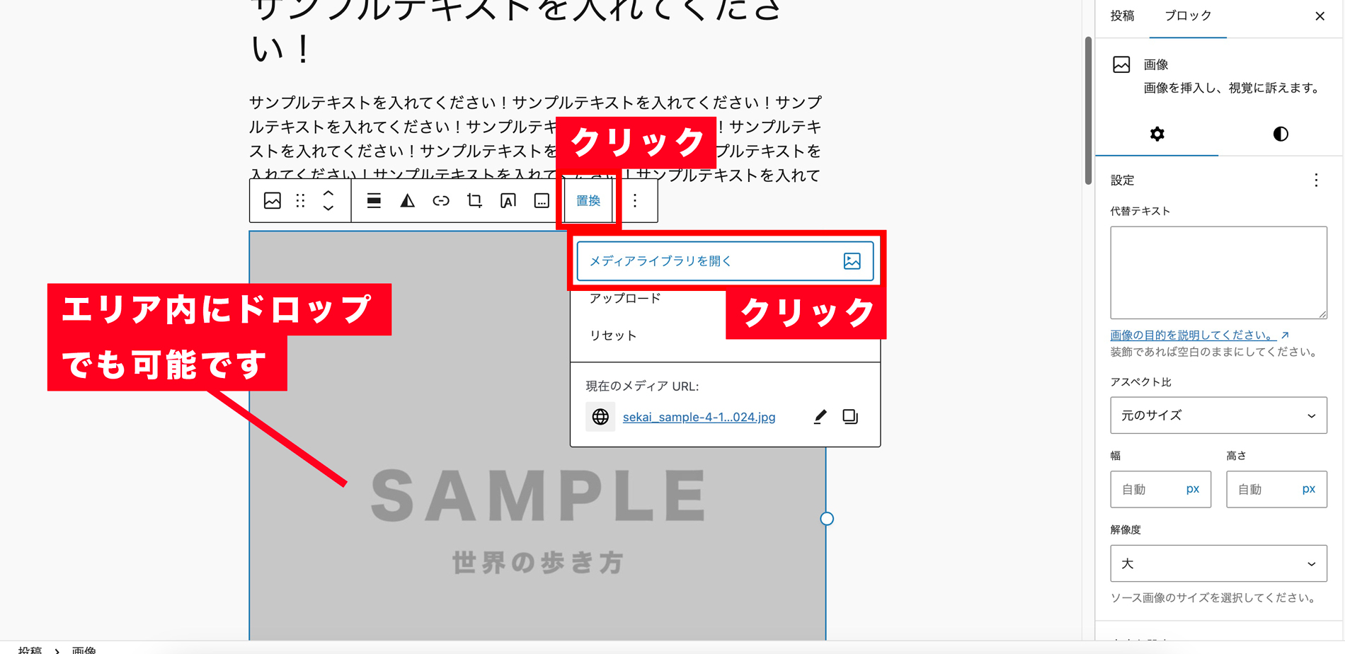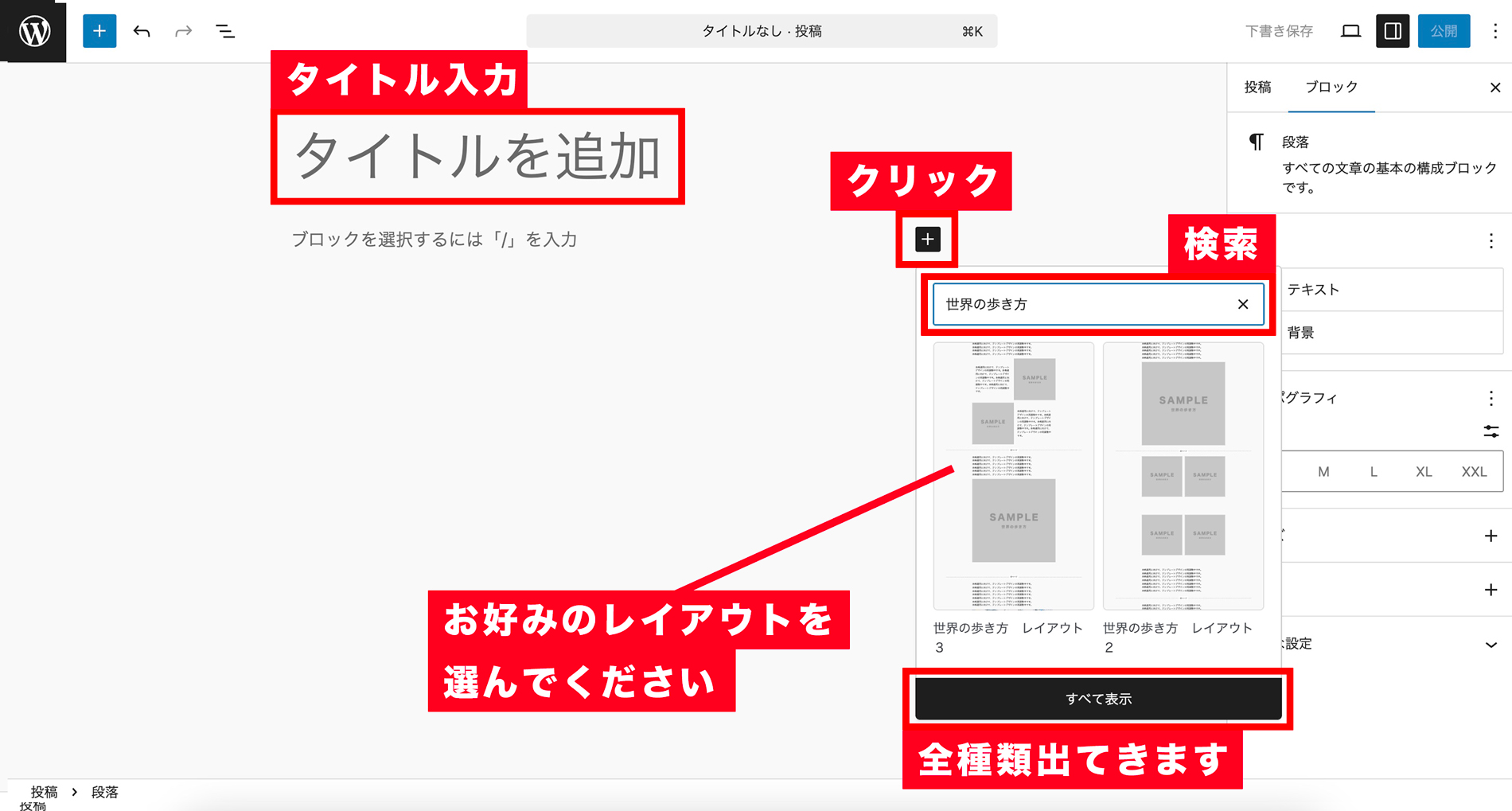 ログイン後、画面右上の「投稿」から記事を投稿することができます。