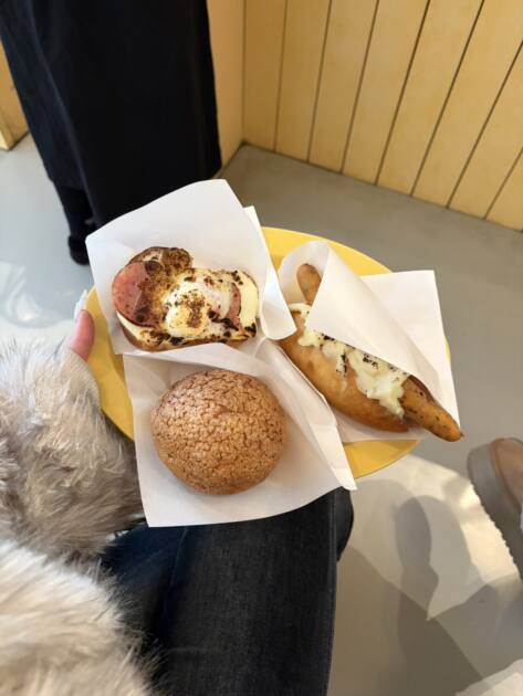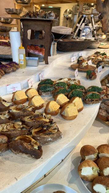 1つ目は、グラタン、チーズ、ハム、卵がミニトーストの上に乗っているパンを頂きました!!