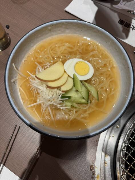 私は焼肉屋に来ると、どんなにお腹が一杯でも必ず〆に冷麺を食べます。笑