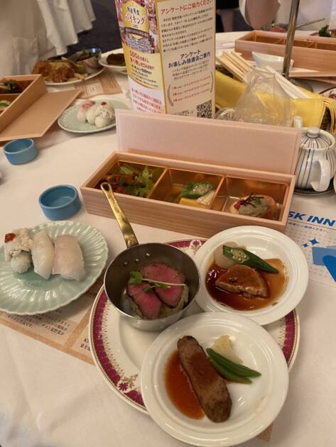 今回このお店に行った際、同会社のO.Tさんといっしょに行きました。奥に映っているものは、その子の頼んだものの一部で、ハムエッグトーストです。こちらも、具がぎっしりつまっていながらも片手で食べられる品だったので、おいしそうでした✨