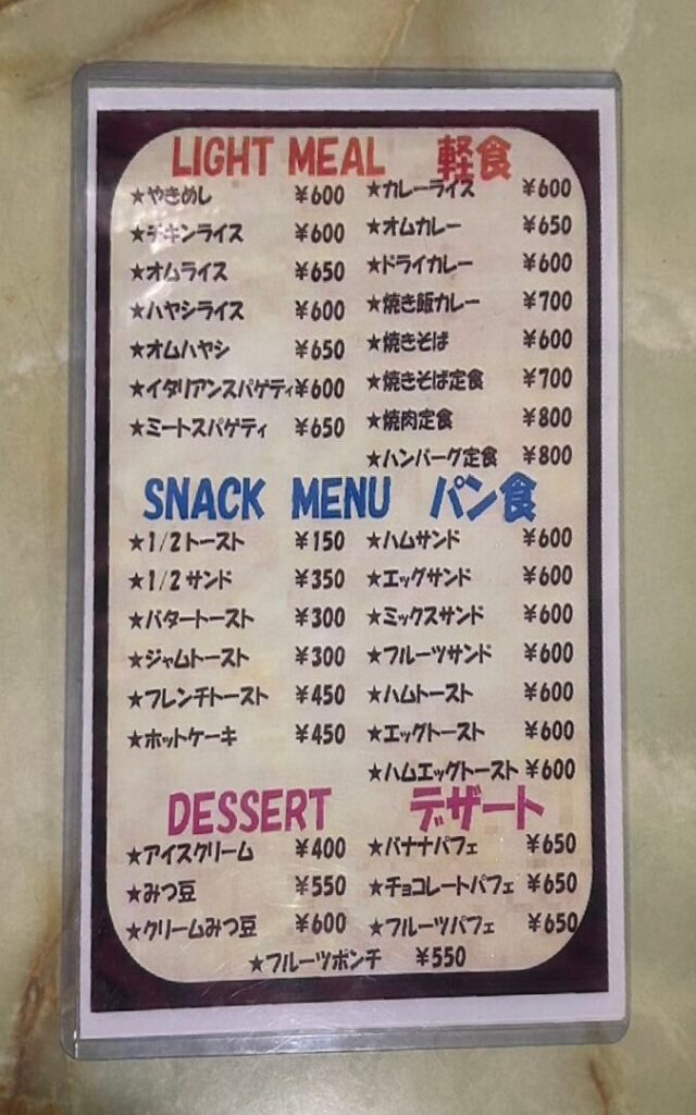 この喫茶の食べもの・飲みものがたくさんあり、今回頼めなかったものの中にまだまだ食べてみたいものがあるので、又伺いたいと思います!