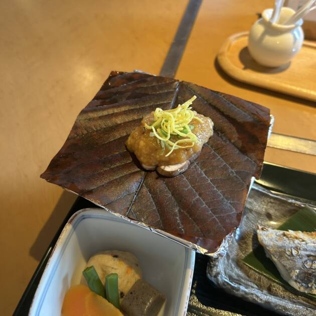 シイタケの上にたっぷりの味噌が乗っていて落ち葉の上で焼いていただきました!!