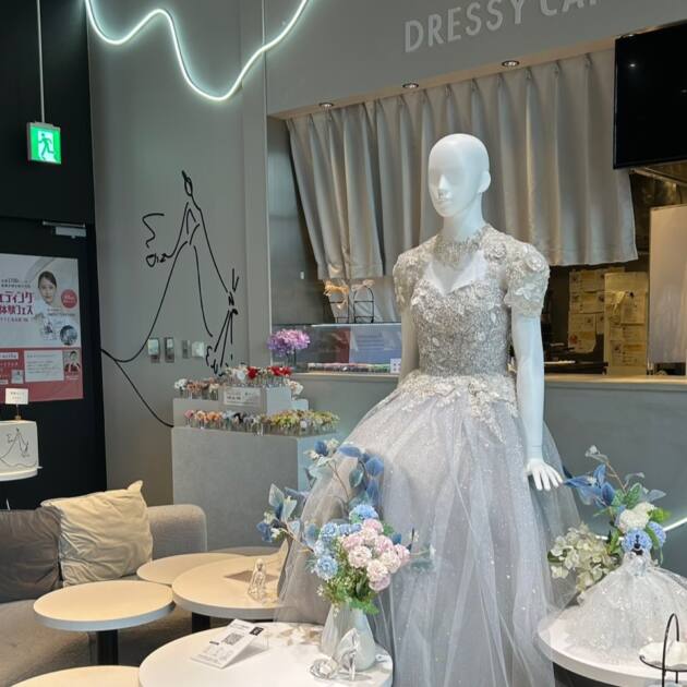 店内の中心には綺麗なドレスを着たマネキンがいて、お店の雰囲気にとてもあっていて
