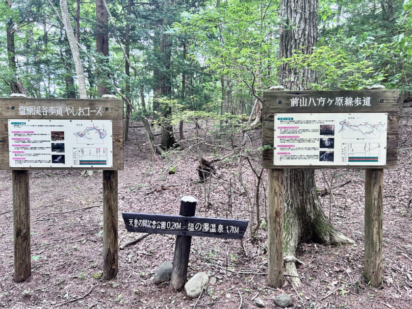 前山八方ヶ原線歩道は塩の湯温泉まで歩くと1.7㎞程。歩きがいがありそうですね。