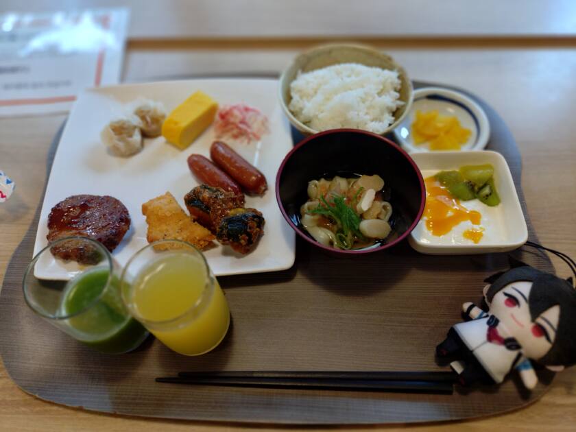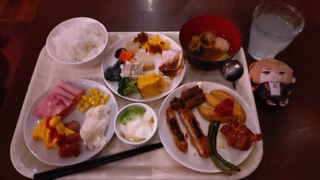 また朝食はビュッフェ形式で、おかずの種類は多めで、お米はかやくごはんと白ご飯と選べたり、フレンチトーストでホイップとチョコソースとあんこがかけられるものがあったりとおかずだけでなくデザート、主食なども選択の幅が多く、朝から食を楽しめました(´。✪ω✪。 ` )