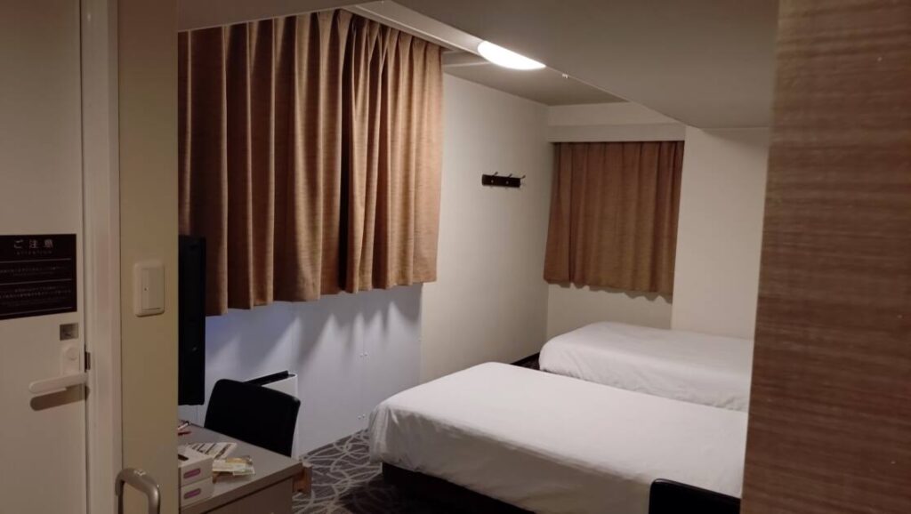 お部屋には、テレビ・ポット・ラテ系のドリンク・水2本があり快適に宿泊することが
