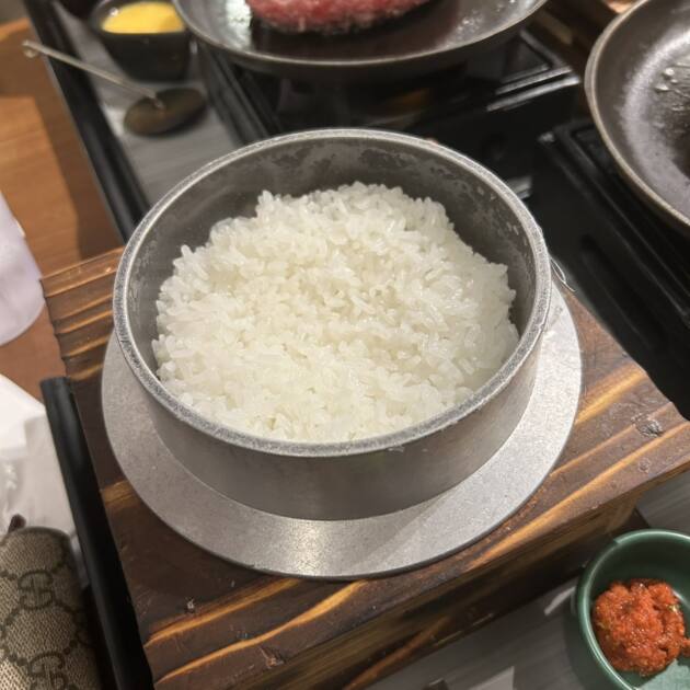 お米は釜に入っていて少し混ぜ食べる量をお茶碗に入れてから釜の蓋を閉じておくと