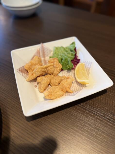 今回私は、「からあげ定食+カニグラタンコロッケ」を注文しました!ここのお店のからあげは、情報雑誌「東海ウォーカー」主催の『後世に残したい東海グルメ遺産』に選ばれていたり、日本唐揚協会主催「からあげグランプリ」の「中日本しょうゆダレ部門」に3年連続決勝戦にノミネートされているらしく、すごくジューシーで美味しかったです(っ ´ー` c)=3